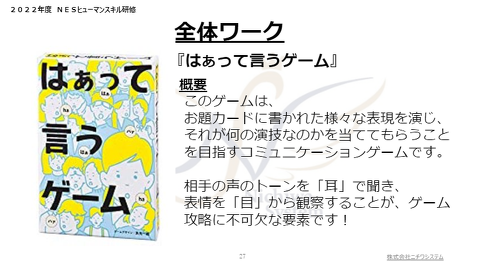- さらに理解するために市販のトーキングけーむをアレンジした「ニチワ式コーチングゲーム」を実施しました。