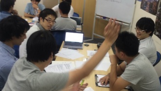 2チームに分かれテーマに基づいて議論を展開中